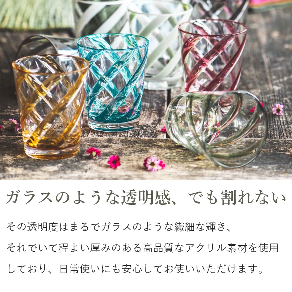割れないので高齢者や子供にも安心してお使いいただけ、ガラスよりも高い透明度で、いつも新鮮な輝きを楽しむことができます。