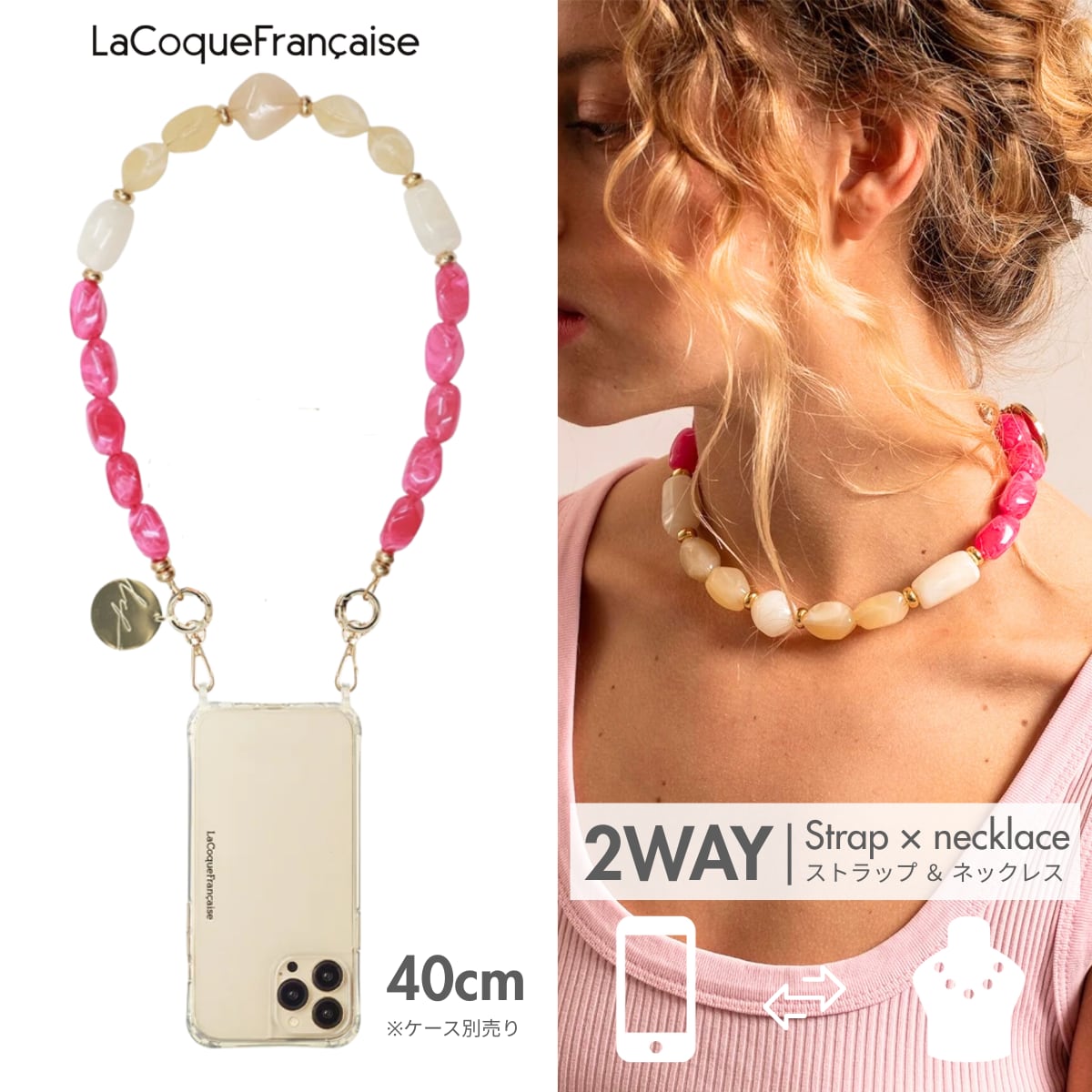 【Divya ディヴヤ 】 40cm ラコックフランセーズ スマホストラップ ネックレス La Coque Francaise フューシャ