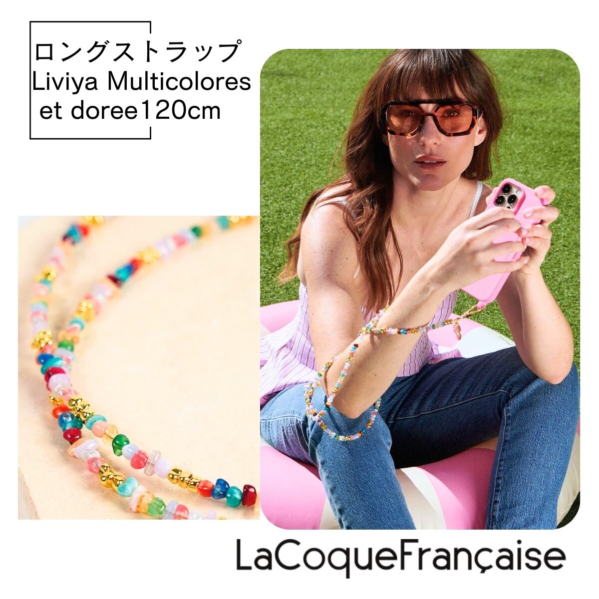 【Liviya doree リビヤ 】120cm ラコックフランセーズ スマホストラップ ネックレス パール スマホショルダー マルチカラー 金 La Coque Francaise