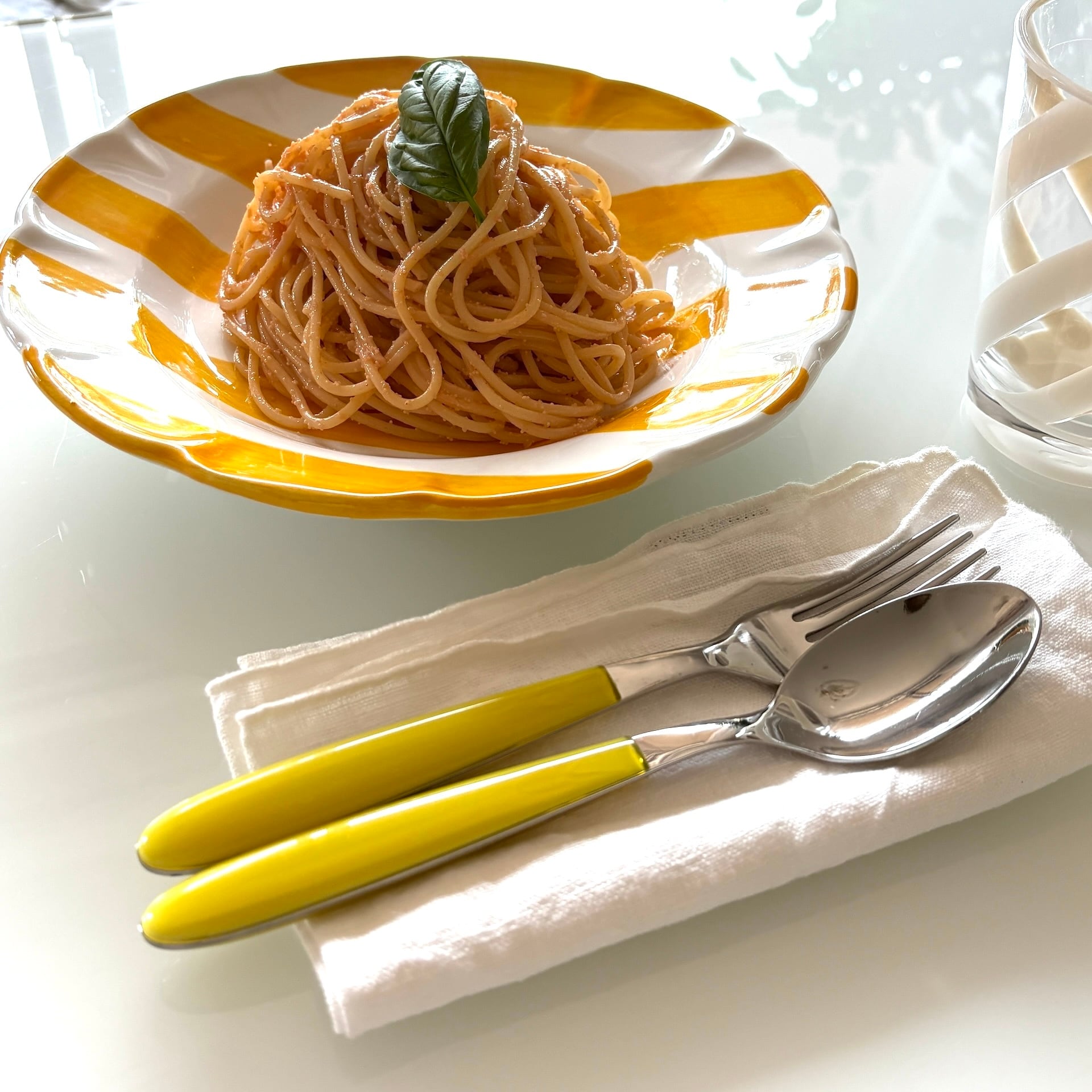 代々受け継がれてきた職人の技と手仕事によって生み出されるこのパスタ皿は、イタリアの陽光や、地中海の空気をそのまま映し取ったような明るく豊かな存在感を放ちます。