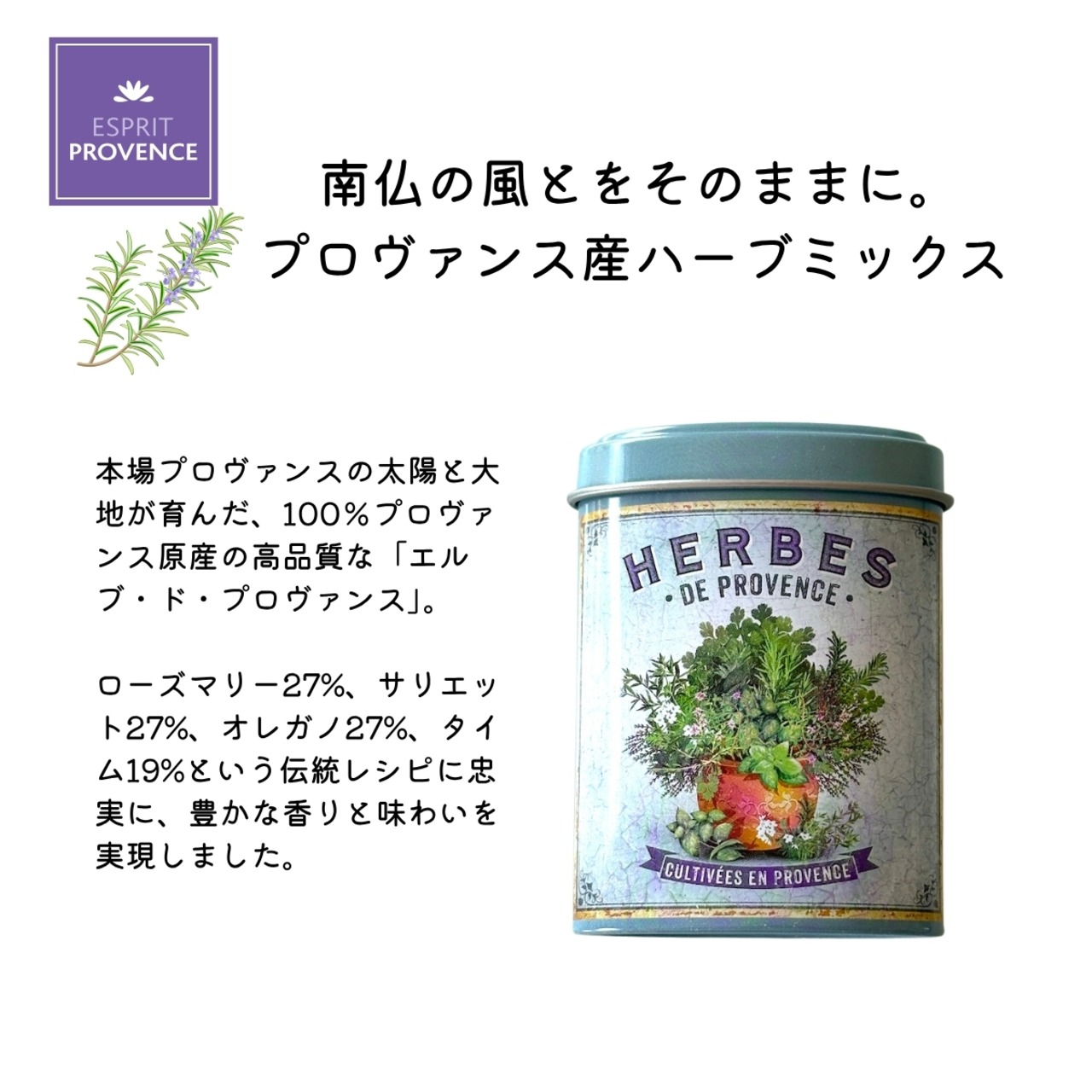 南仏料理の味付けに! エルブ・ド・プロヴァンス(プロヴァンス産・認証付きブレンド) エスプリプロヴァンス プロヴァンスのミックスハーブ