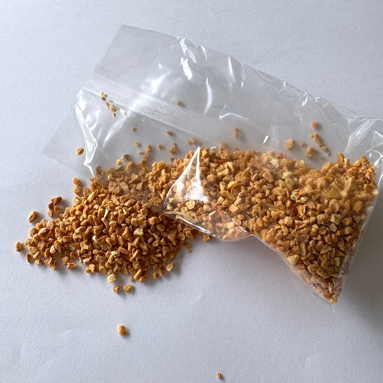 粉末でもスライスでもない、細かな顆粒状なので、加熱料理にも生仕上げにも使いやすく、使うたびにふわっと広がる香ばしい香りが食欲をそそります。