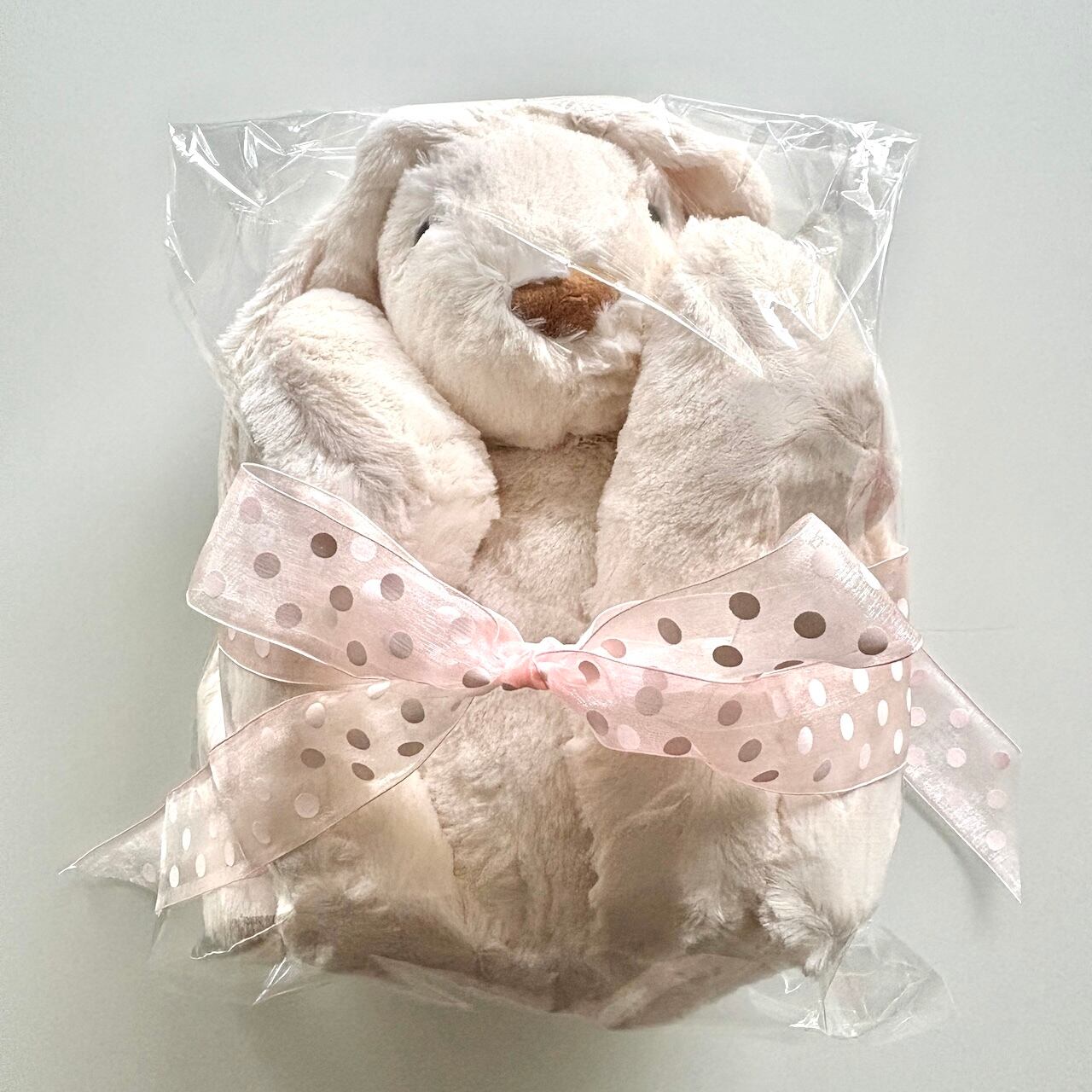 抱きしめたくなる柔らかさ。長いお耳が愛らしい、ふんわりプラッシュのホワイトラビット。ベビーのはじめての相棒にも、大人のインテリアにも似合うやさしい佇まいです。
