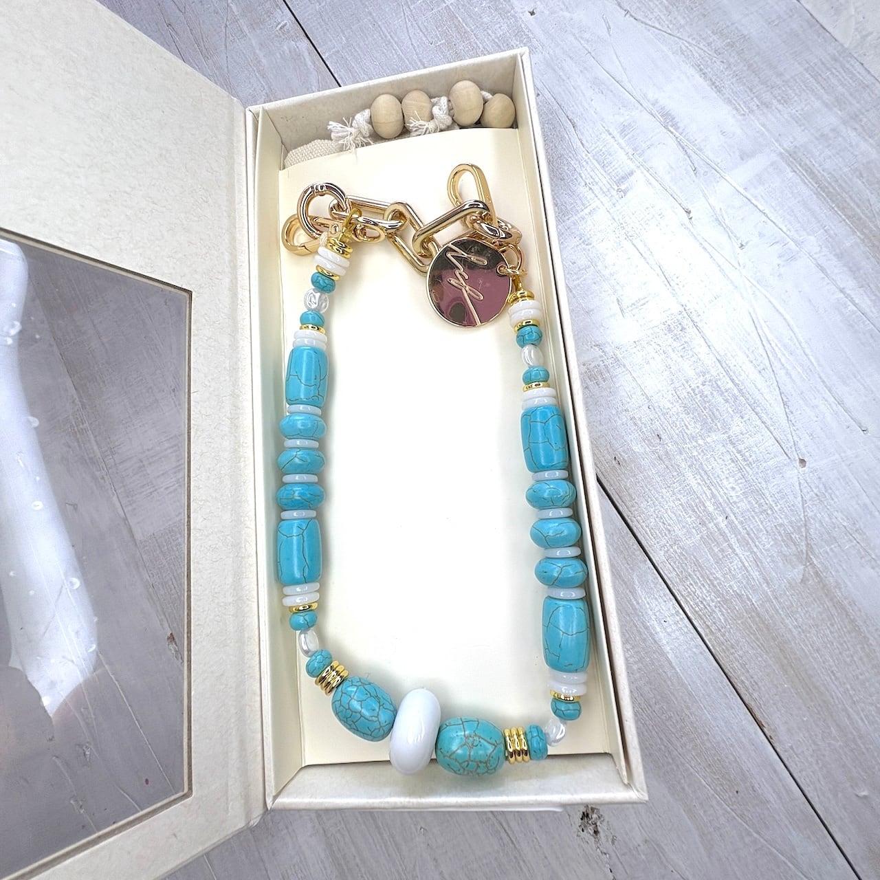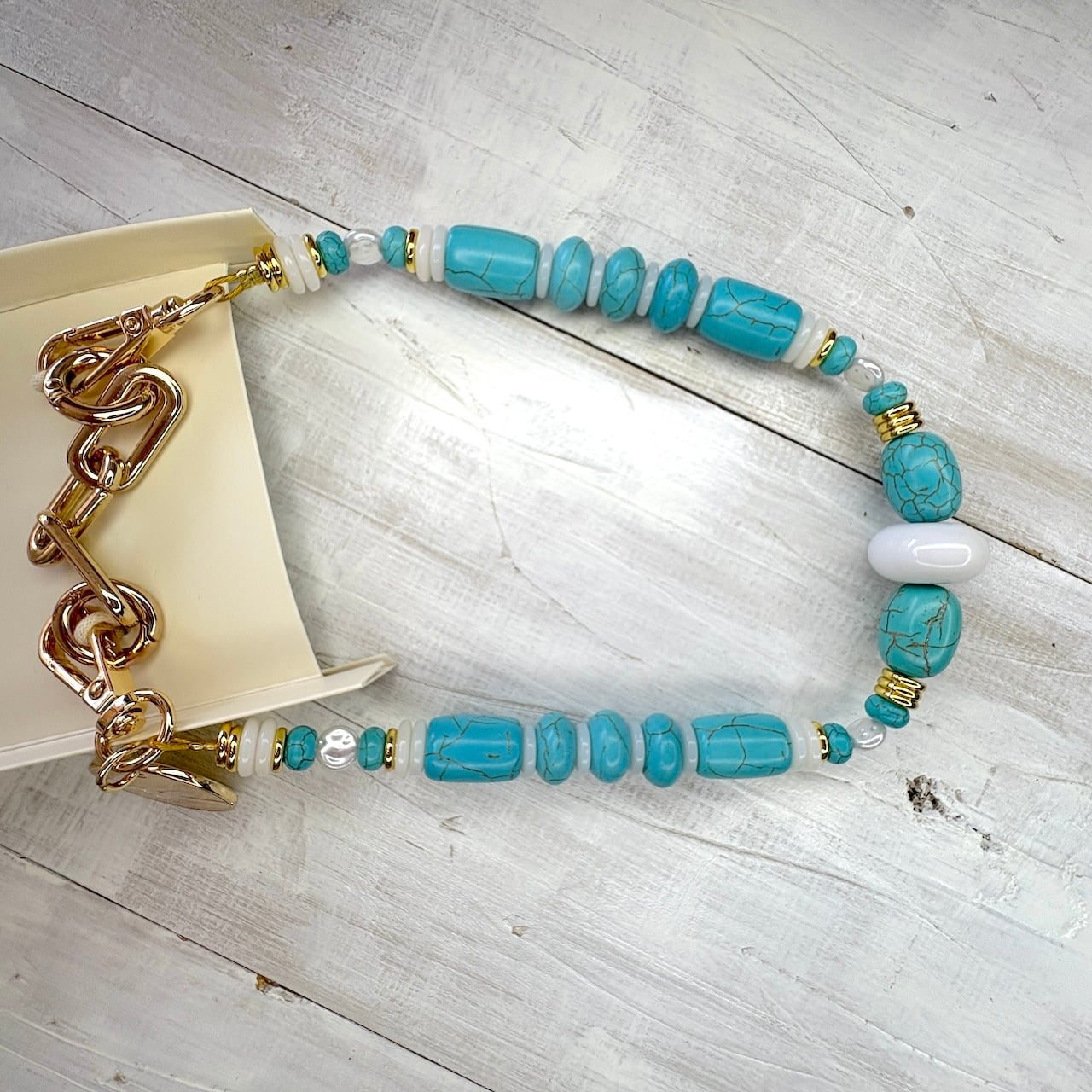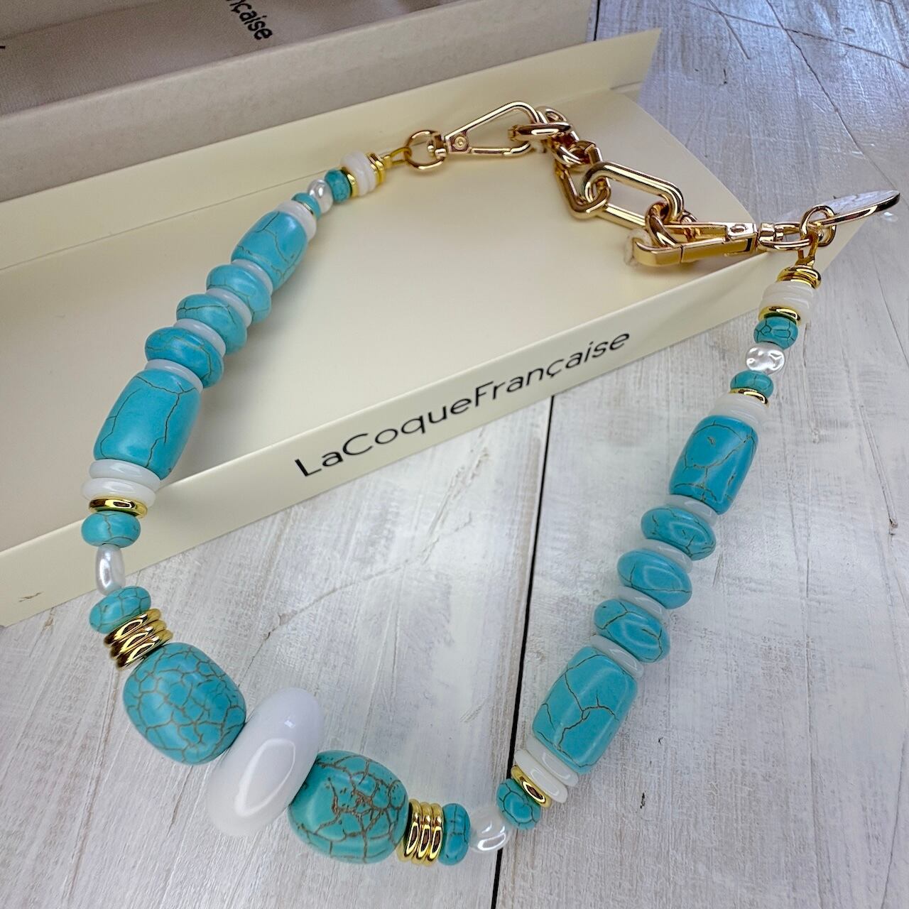 【CLEO TURQUOISE クレオ・ターコイズ 】40cm ラコックフランセーズ フランス製 ハンドメイド スマホストラップ ネックレス La Coque Francaise