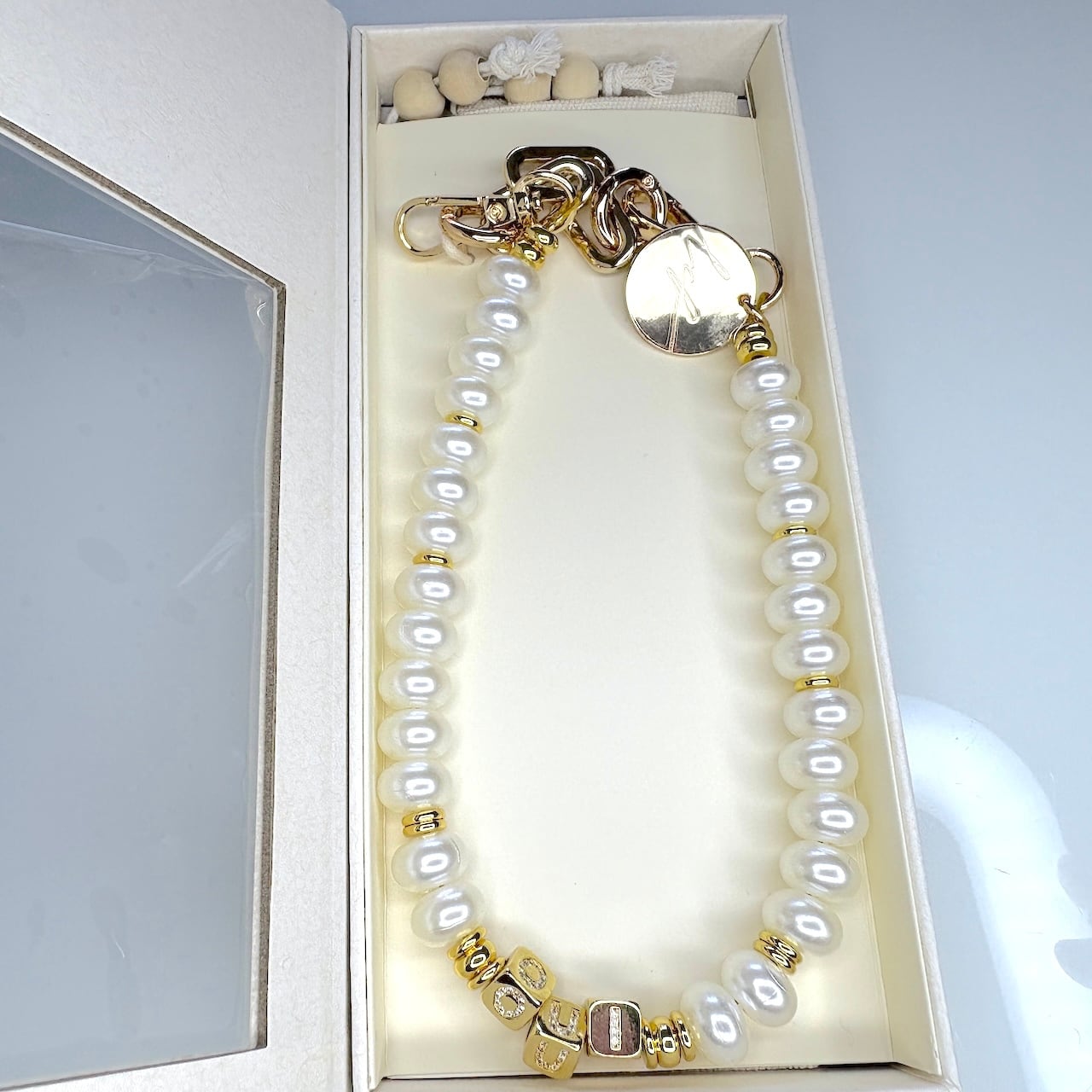 【 OUI PERLE BLANC ウィ・パールブラン】40cm ラコックフランセーズ フランス製 ハンドメイド スマホストラップ ネックレス La Coque Francaise