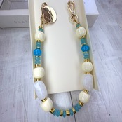 【DANAE TURQUOISE ダナエ・ターコイズ 】40cm ラコックフランセーズ フランス製 ハンドメイド スマホストラップ ネックレス La Coque Francaise