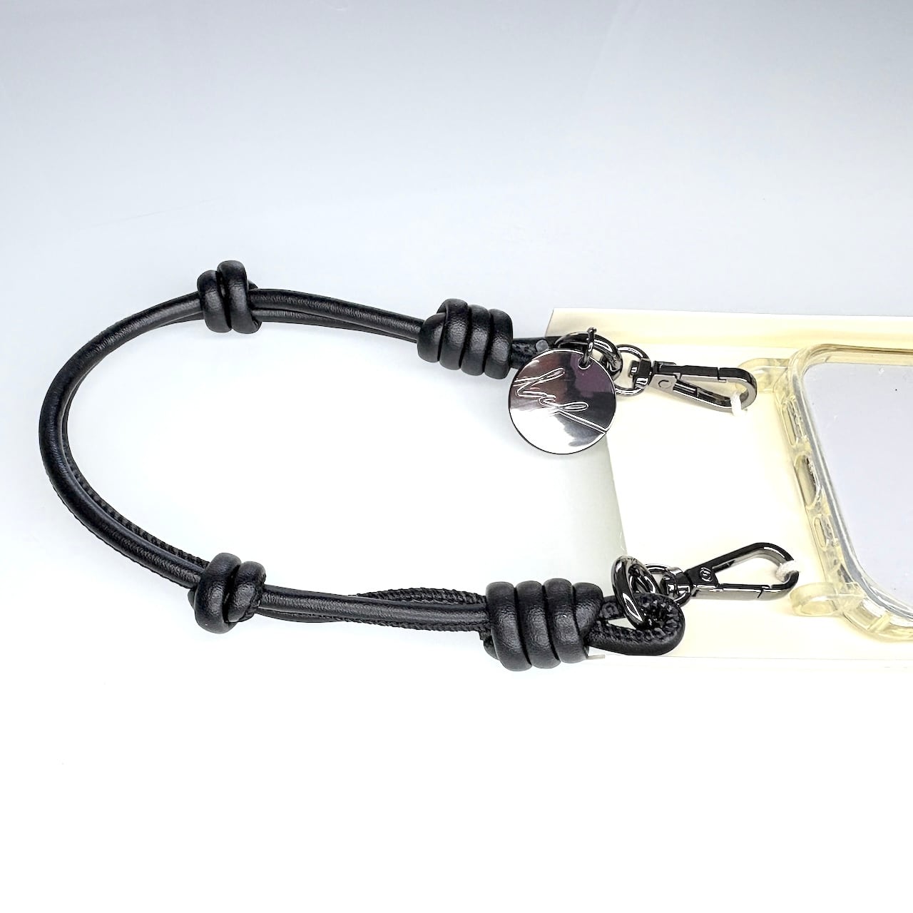 La Coque Française(ラコックフランセーズ)のNolan Noir(ノラン・ノワール)40cmショートストラップは、洗練されたブラックレザー調ロープに、存在感ある結び目ディテールをあしらった、都会的でモダンなデザインが魅力です。