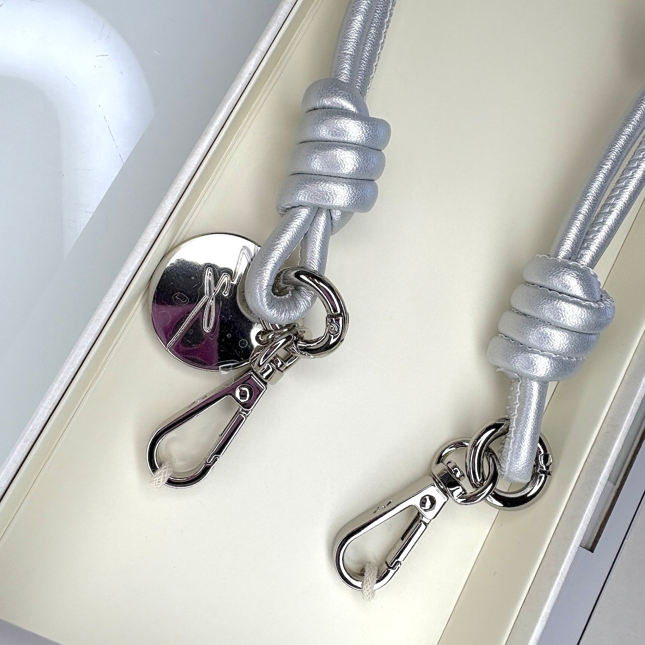 シルバーのメタリックロープと立体的なノット(結び目)デザインが、シンプルな中にもモダンな個性を添える一本です。