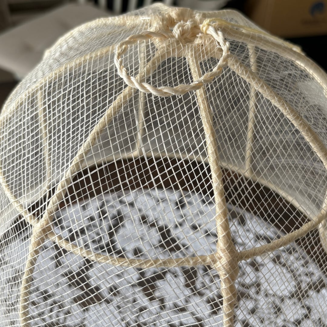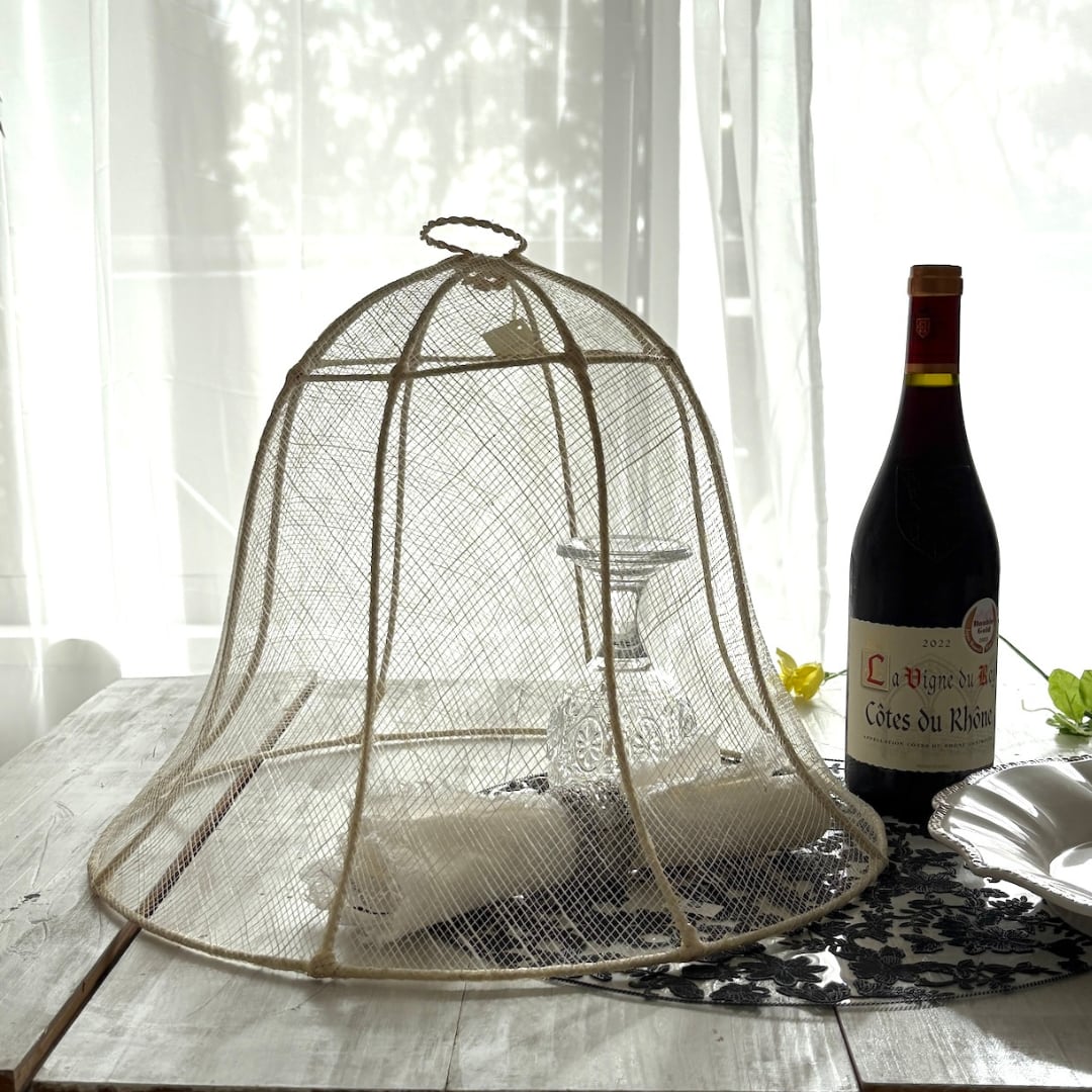 こちらは直径40センチ、高さ30センチで、ベルの形をしたとてもおしゃれな形です。高さのあるボウルや果物の鉢などをすっぽりカバーします。