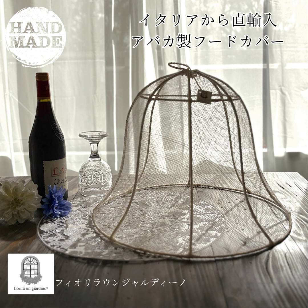フィオリラウンジャルディーノ 【直径40cm ベル型 ホワイト】 アバカ フードカバー フィオリラウンジャルディーノ fiorira un giardino イタリア ブランド ネットクロッシュ 虫除け キッチンパラソル カバー マニラ麻 ハンドメイド アウトドア おしゃれ 高級 麻