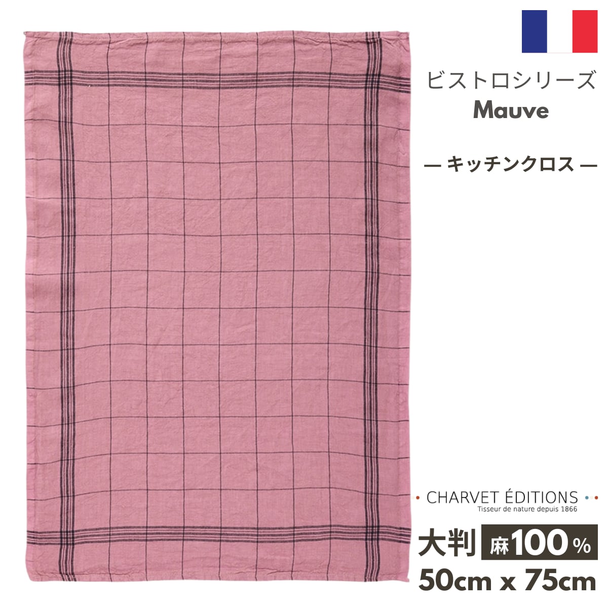 【ビストロ・Mauve(モーヴ)】トルション シャルべエディション フランス製 キッチンクロス 麻 100% トルション ティータオル ふきん トーション リネン シャルべ 格子