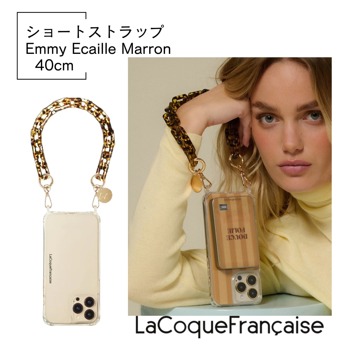 【EMMY ECAILLE MARRON(エミーベッコウマロン) 】ラコックフランセーズ スマホチェーン la coque francaise 携帯チェーン スマホ ストラップ ハンドストラップ ショートストラップ スマホショルダー 携帯ストラップ 全機種対応 おしゃれ フランス直輸入