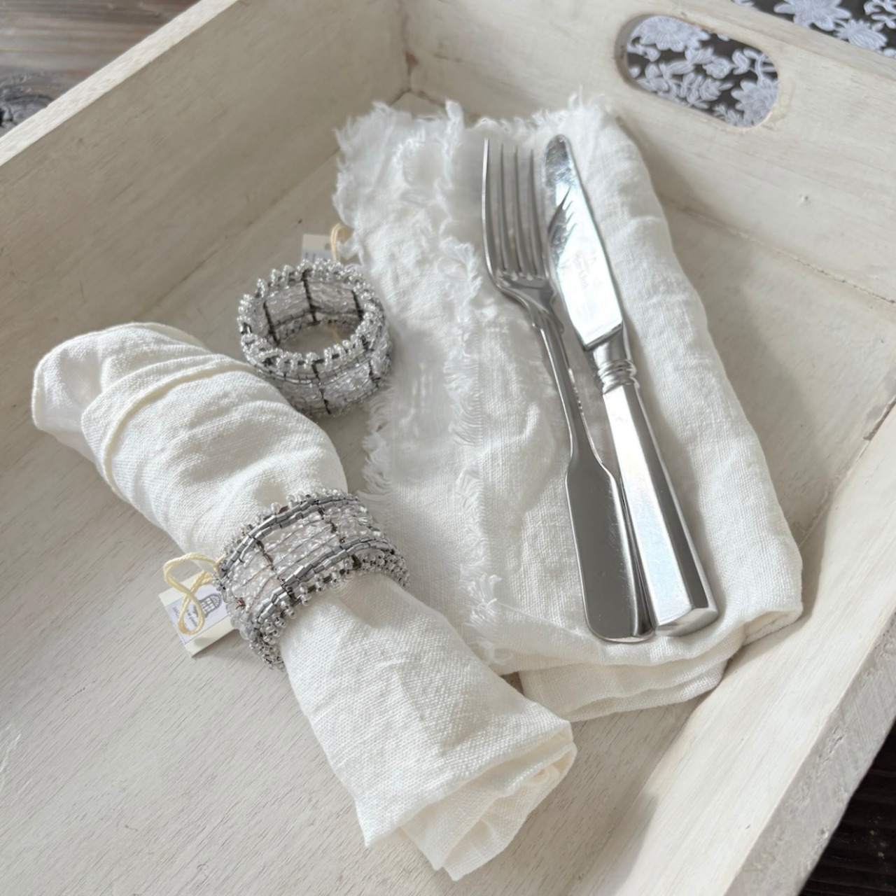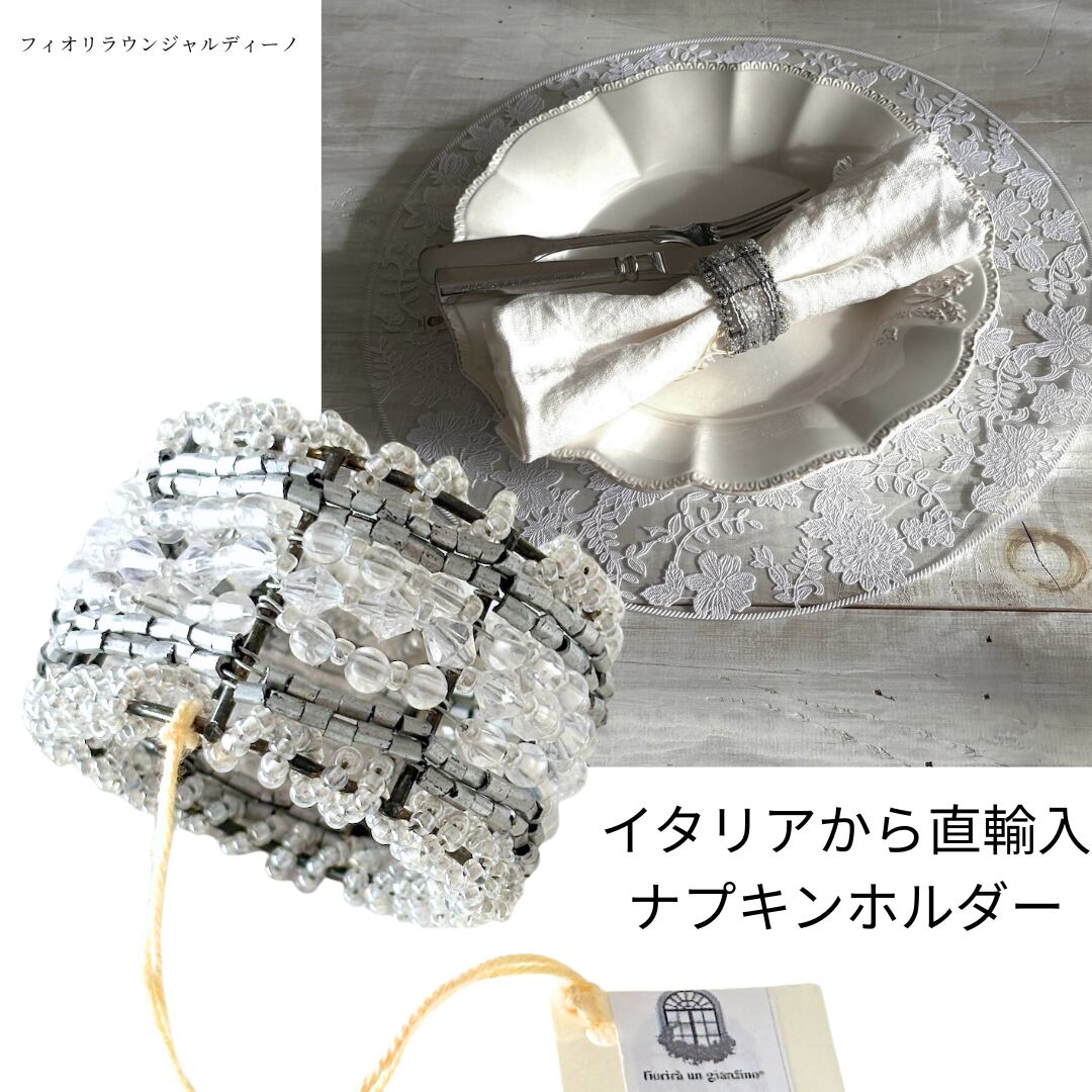 フィオリラウンジャルディーノ ナプキンホルダー ビーズ 透明 ホワイト パール おしゃれなナプキンホルダー テーブルセット ナプキンリング