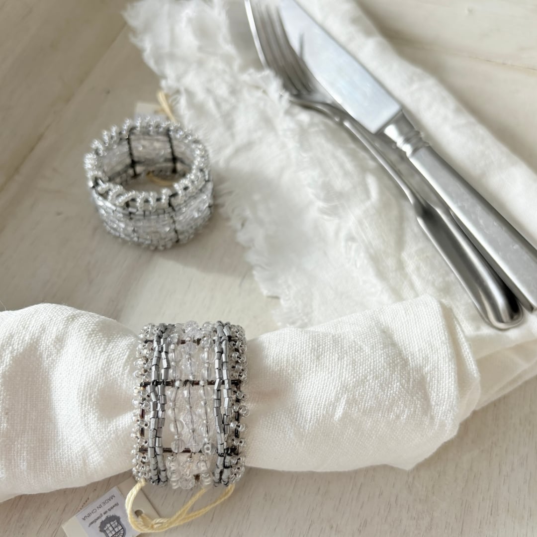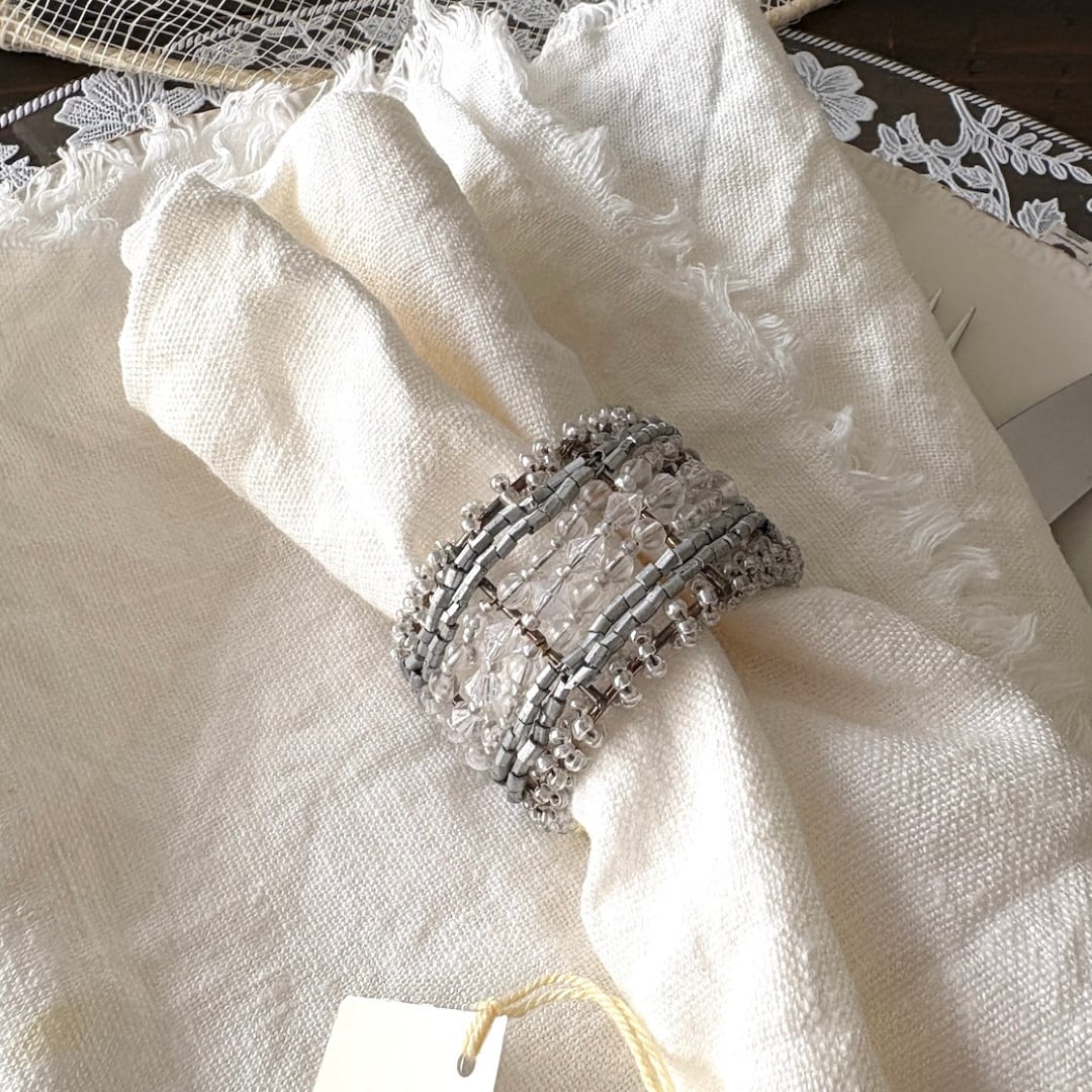 直径約4cmの程よいサイズ感で、ナプキンを上品にまとめながら、食卓のアクセントとしても存在感を放ちます。