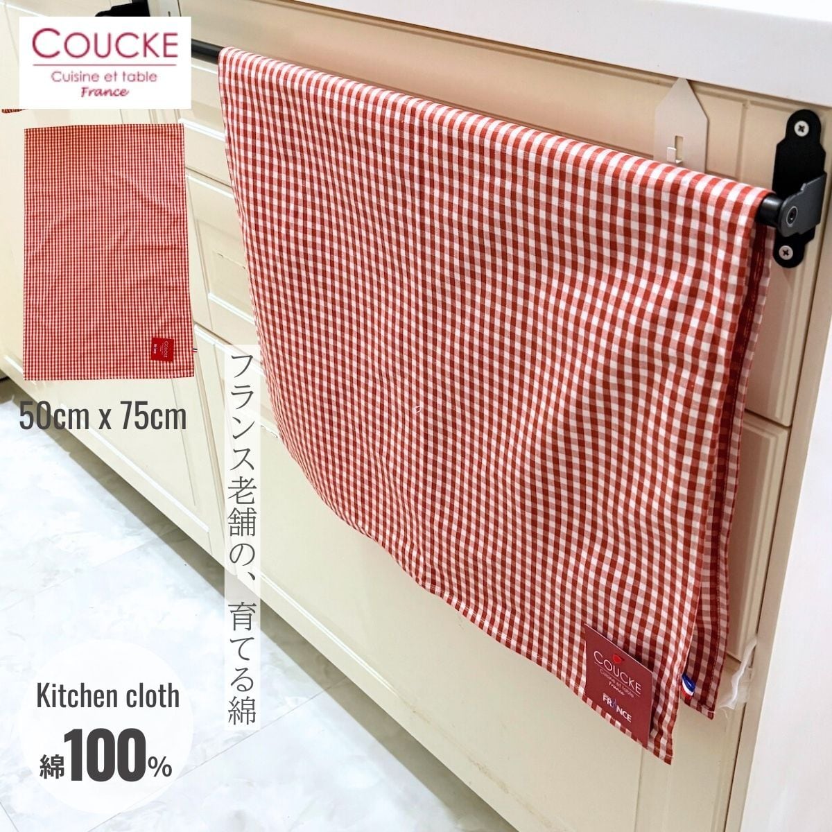 フランスから直輸入した、クーケ・ブランドのティータオル、キッチンクロス。