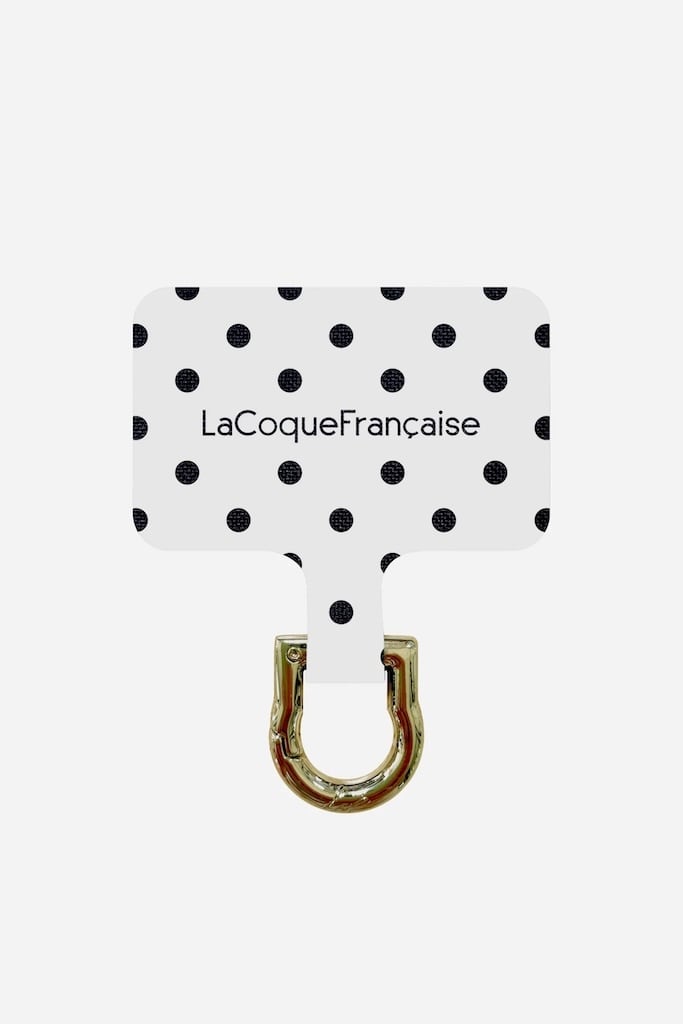 【 白地 ブラック水玉】ユニバーサルアダプター 全機種対応 ストラップアダプター モバイルケース スマホアダプター ラコックフランセーズ 携帯アダプター ストラップ Adaptateur Universel LCF Doreフランス直輸入