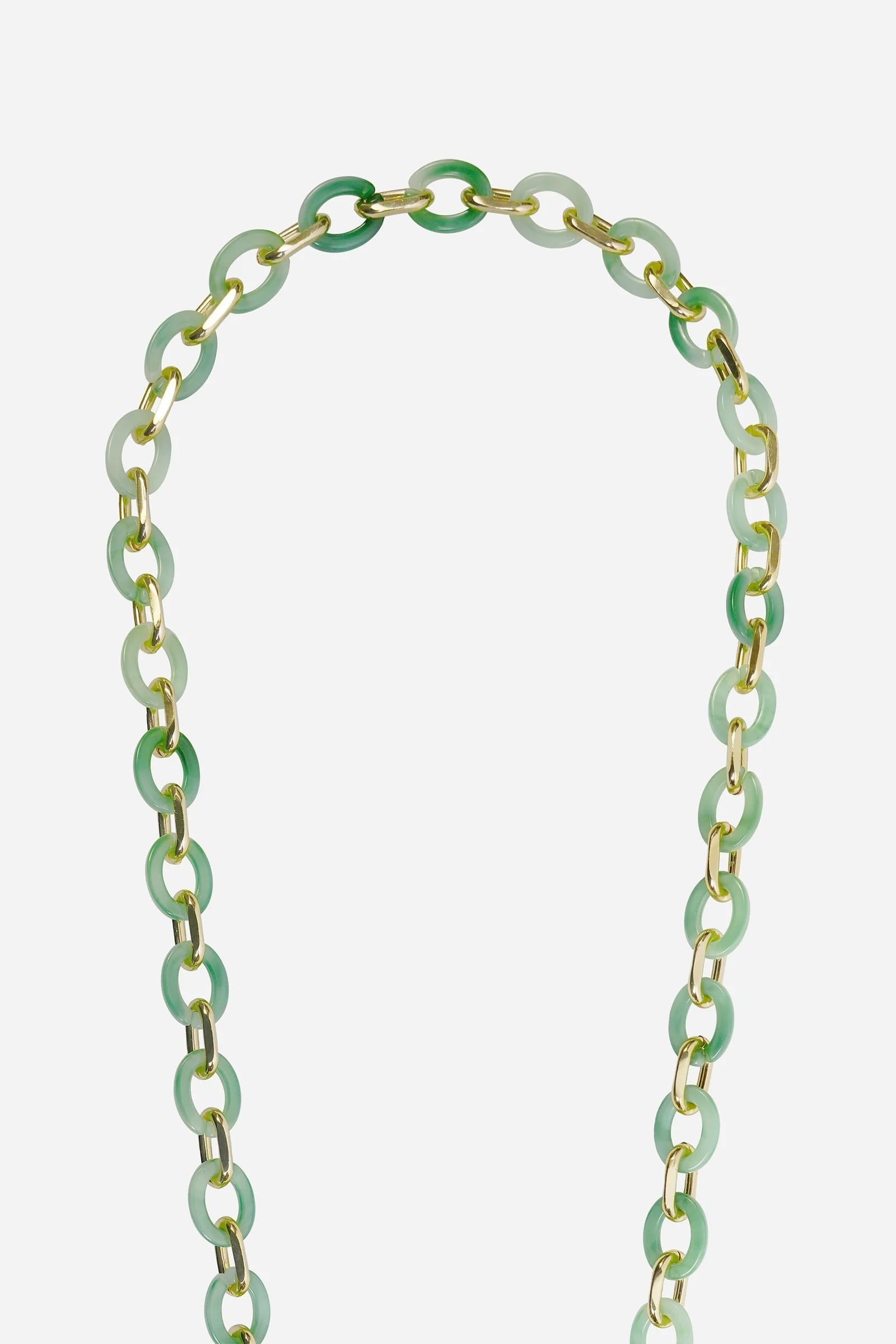 紺碧の海を彷彿される綺麗なエメラルドのレジンとゴールドのコンビが素敵なロングストラップ。120cmで軽く、ファッションアクセサリーとしてご利用いただけます。