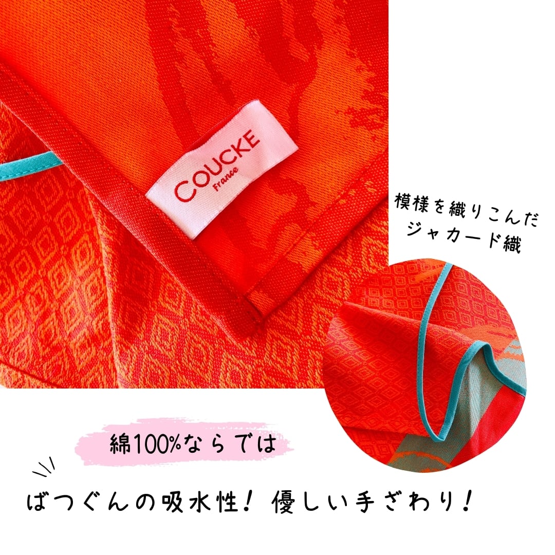さすがフランス、とうなってしまうほどのおしゃれなデザイン。洋服に食材が飛び散ることを避ける前掛けとはいえ、どんな食事シーンでもオシャレさと美学を忘れません。