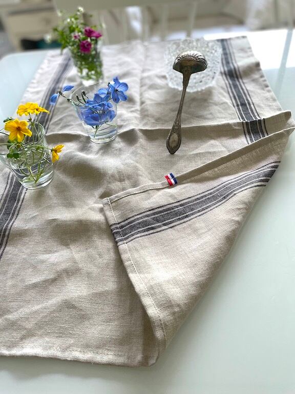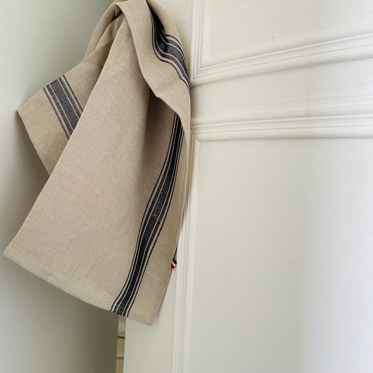 フランス製 高級 キッチンクロス【ESTHEBAN ANTHERACITE (エステバン・墨カラー)】フCOUCKE クーケ トルション ティータオル トリコロール ナチュラル COUCKE 麻 キッチンタオル ふきん リネン フランス製 選べる 柄 高品質 速乾 大きい 一生使える