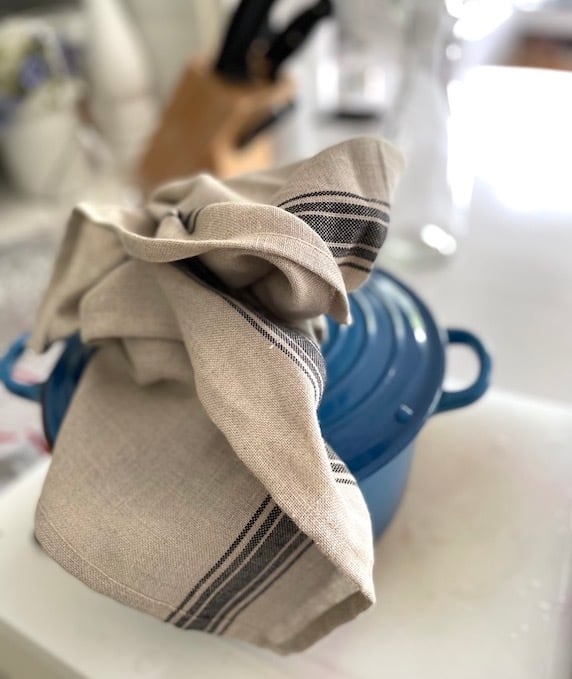 エステバンの上品なデザインは、どんなキッチンにもマッチし、テーブルを美しく彩ります。ナチュラル素材のリネンは速乾性に優れ、長時間の台所仕事も取り替えいらず、一日中活躍してくれます。