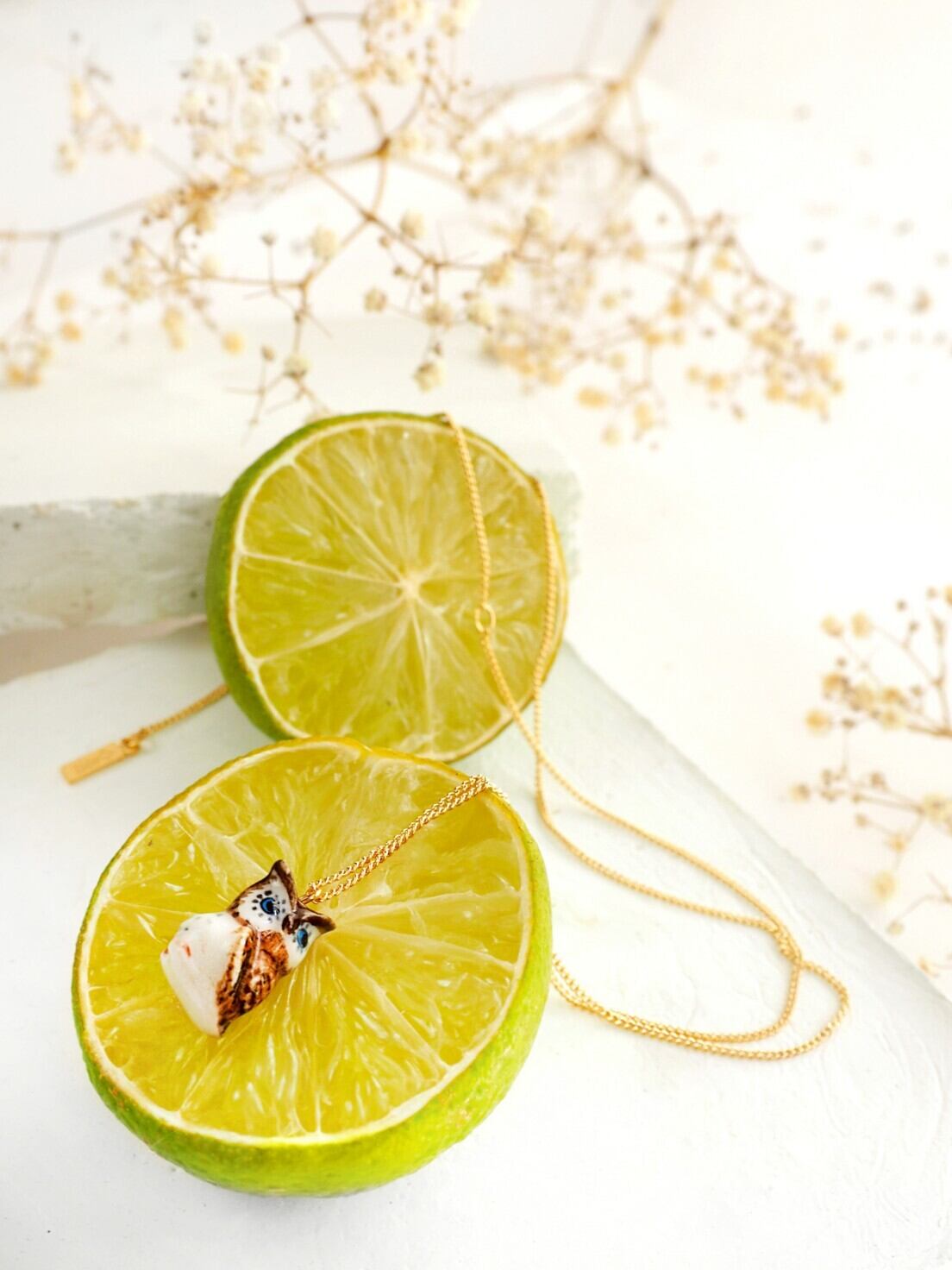 華やかな花と可愛らしい動物たちが描かれた、nach(ナッシュ)のペンダントネックレス。24金メッキされた真鍮のチェーンと、手作りで手描きの磁器製のペンダントが、さりげないオシャレ感を演出してくれます。
