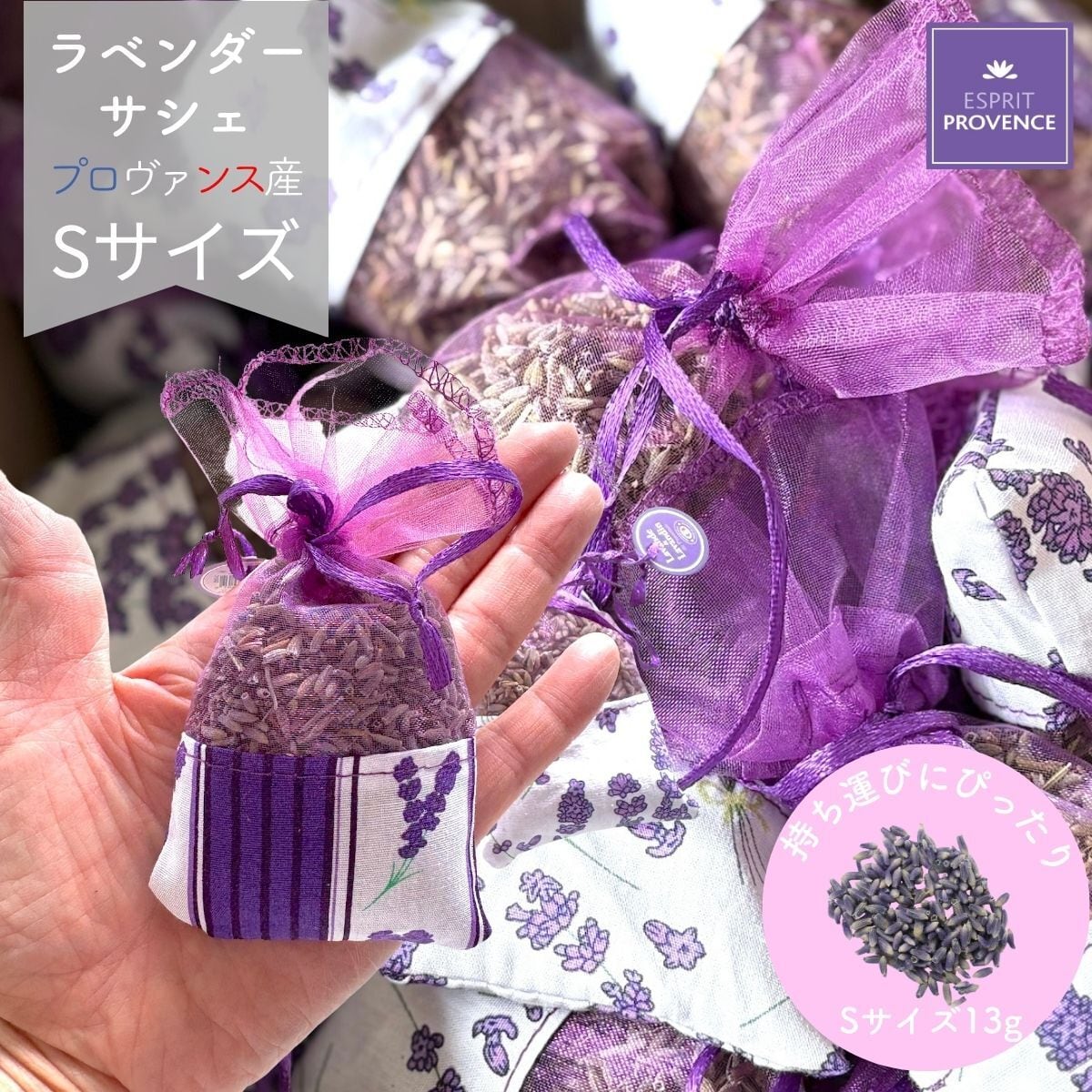 プロヴァンス地方にあるアヴィニヨンに本社を置くESPRIT PROVENCE社から直接輸入したもので、香りもしっかりと持続します。上品で優雅なラベンダーの香りが、お部屋やクローゼット、リラックスタイムを彩ります。大切な人へのギフトとしても最適です。
